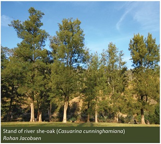 Some species of casuarina, such as river she-oak, grow along river and stream banks. Their roots help stabilise the banks, which reduces surface-water runoff, erosion and sedimentation. This helps maintain water quality for environmental and recreational purposes.