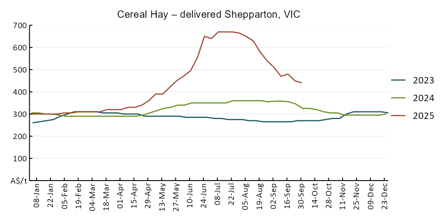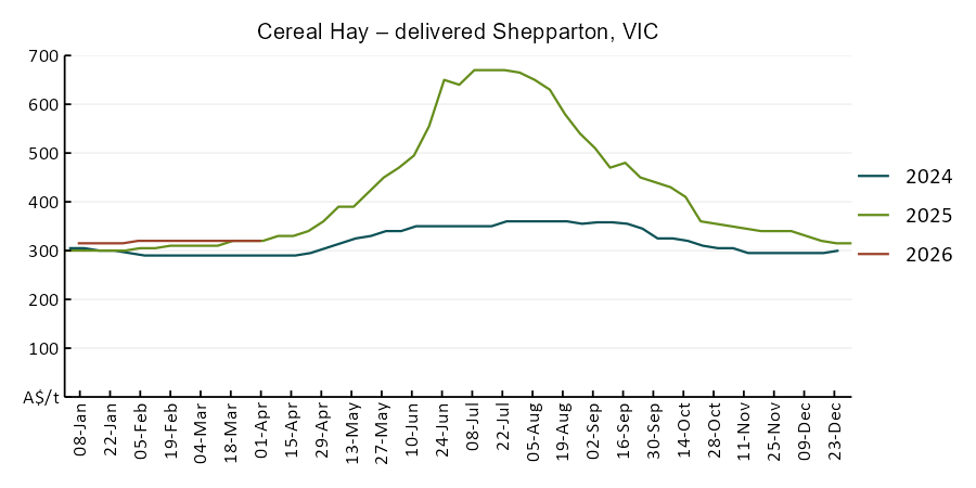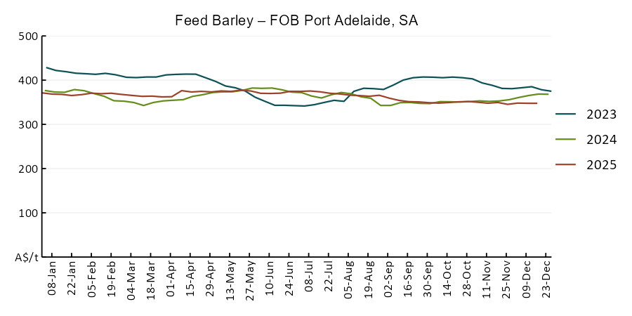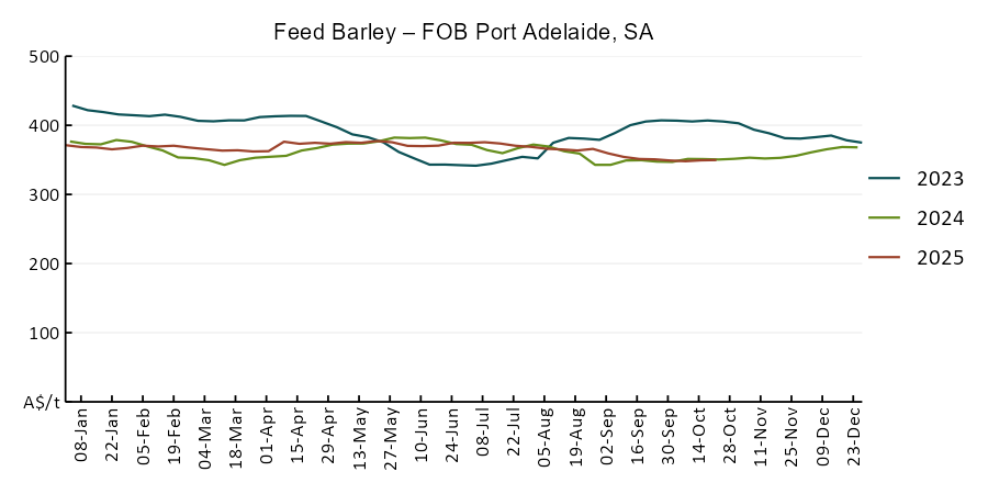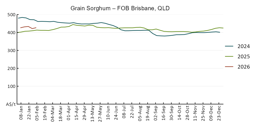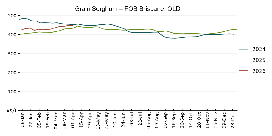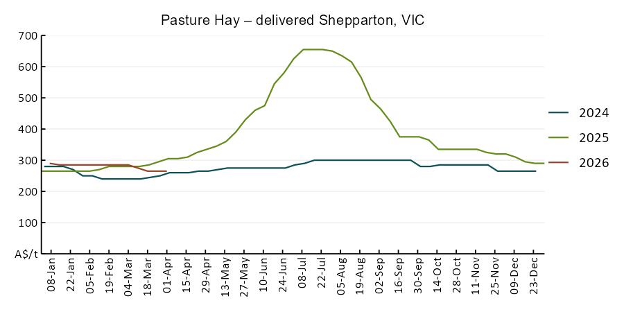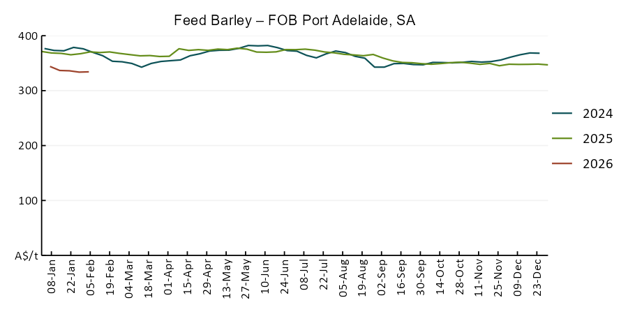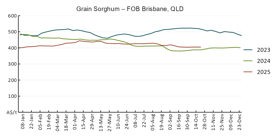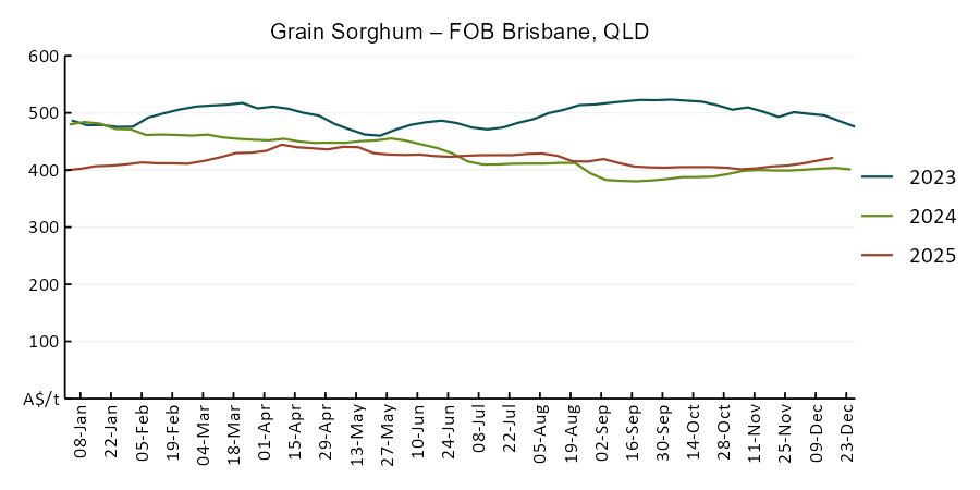 Click chart image to expand.Domestic cropsMilling wheatFeed wheatCanolaGrain sorghumFeed barleyDomestic livestockBeef - Eastern Young CattleMuttonLamb - National TradePig - Eastern SeaboardLive cattleDomestic fodderCereal hayPasture hayLucerne haySources: See data attribution