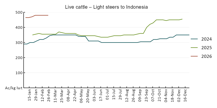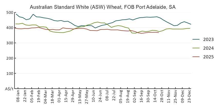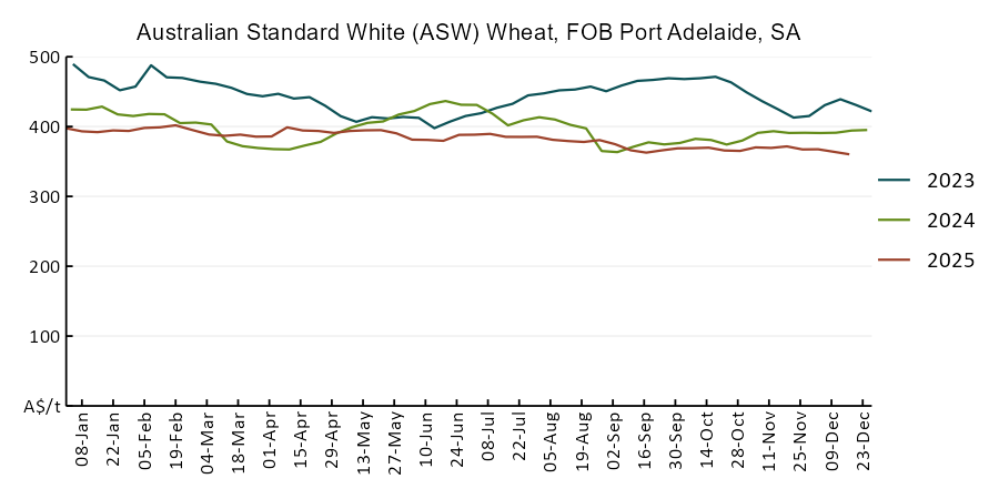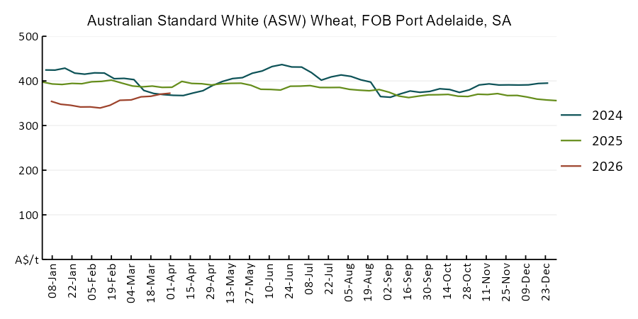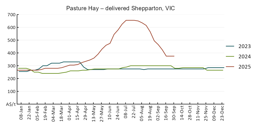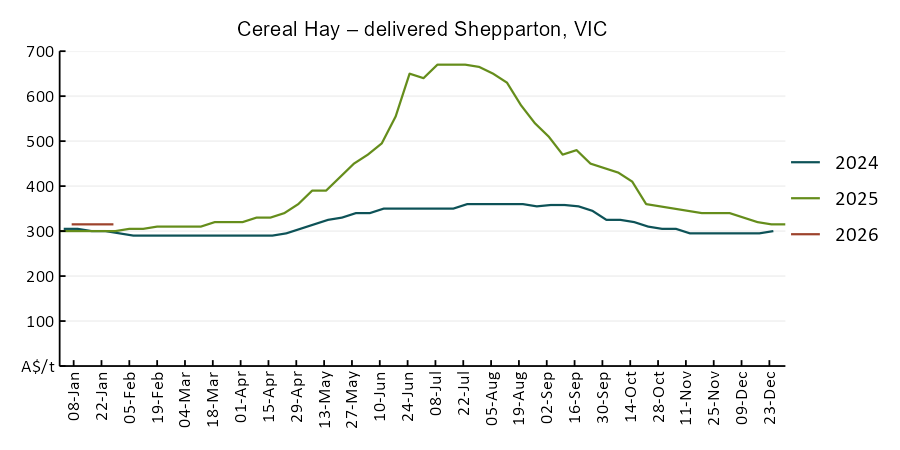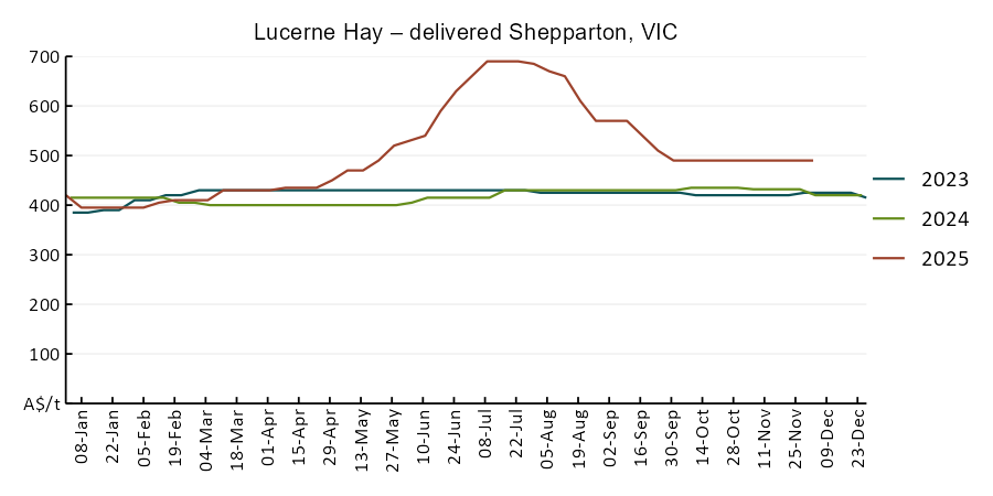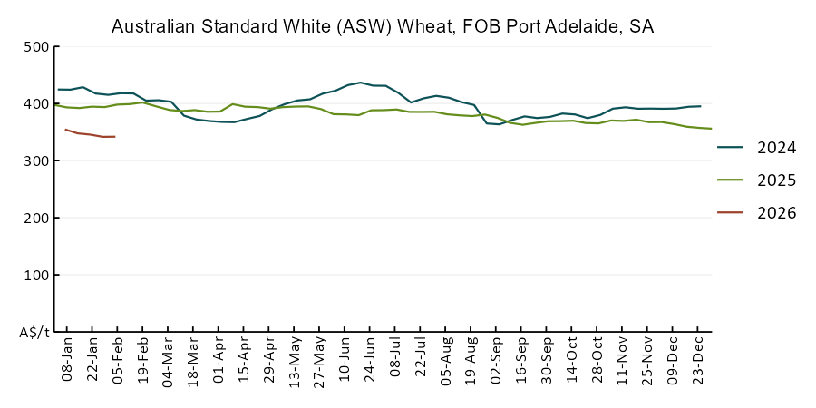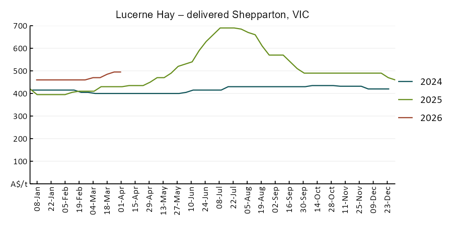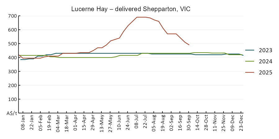 Click chart image to expand.Domestic cropsMilling wheatFeed wheatCanolaGrain sorghumFeed barleyDomestic livestockBeef - Eastern Young CattleMuttonLamb - National TradePig - Eastern SeaboardLive cattleDomestic fodderCereal hayPasture hayLucerne haySources: See data attribution